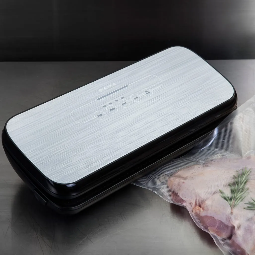 Exponering för luft kan få mat att förlora både smak och näring. Det kan också öka tillväxten av bakterier och jäst, vilket kan leda till att maten förstörs. Vakuummaskinen Champion CHVF210 tar bort luften och stänger in både smaken och färskheten. Vakuumförpacka morgondagens lunch eller njut av säsongens guldkorn längre – CHVF210 håller lättförstörda eller sällan använda ingredienser fräscha längre.