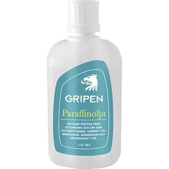 Gripen Paraffinolja 150 ml – Skyddar träytor mot uttorkning och gör dem vattenavvisande. Utmärkt till bänkskivor, skärbrädor och köksredskap i trä.