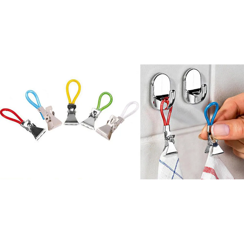 Dessa klämmor är en innovativ lösning för att enkelt och säkert hålla upp dina kökshanddukar och andra småtextilier. Varje förpackning innehåller fem klämmor, var och en utrustad med en slitstark plastövertäckt vajer för att garantera hållbarhet och pålitlig prestanda.