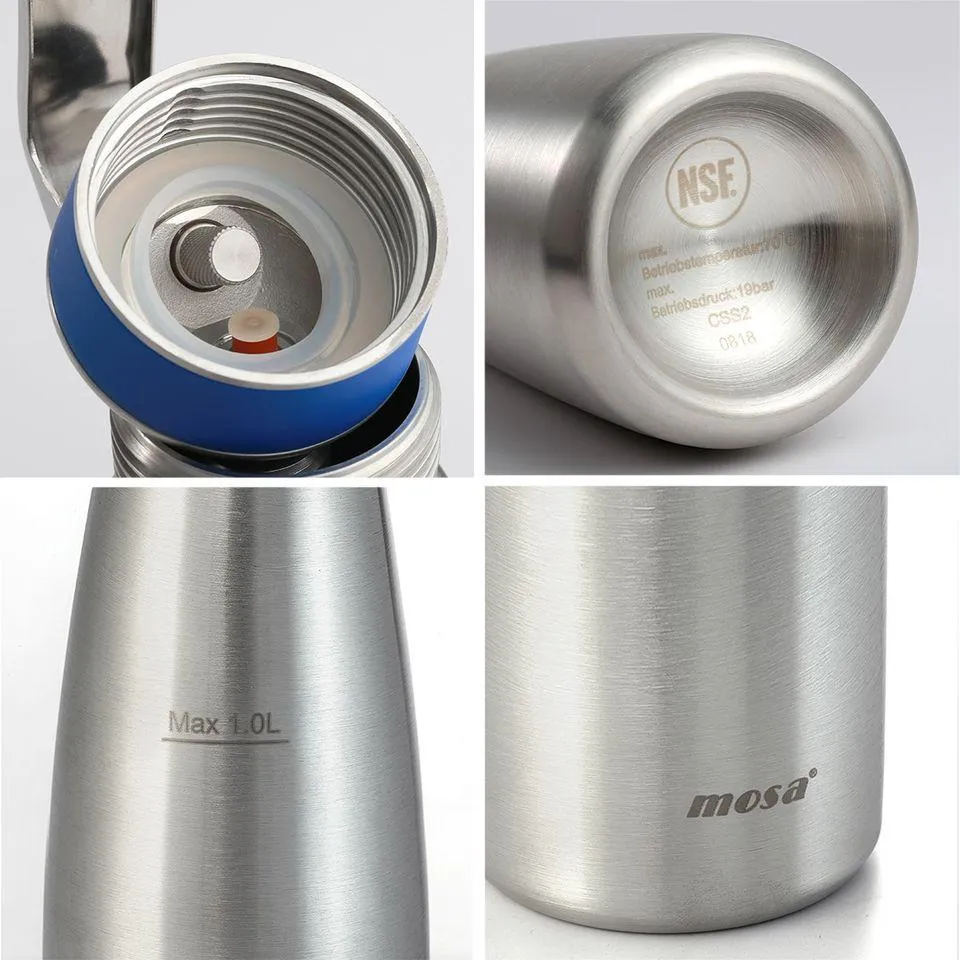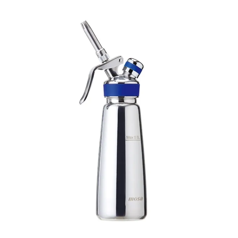 Högkvalitativ rostfri stålflaska och huvud, designad för professionell användning. För beredning av utsökt vispad grädde, desserter, infusioner och såser.