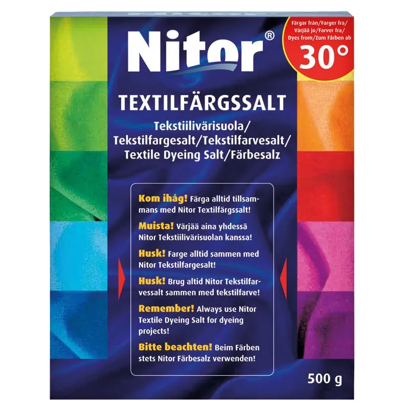 Nitor har producerat sin egen textilfärgssalt som är gjord för Nitors egna Textilfärger