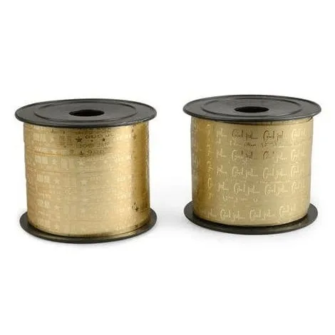 Snyggt presentsnöre i guld med texten God Jul. Perfekt när årets julklappar ska slås in. Snöret är 50 meter långt och 1 cm brett.